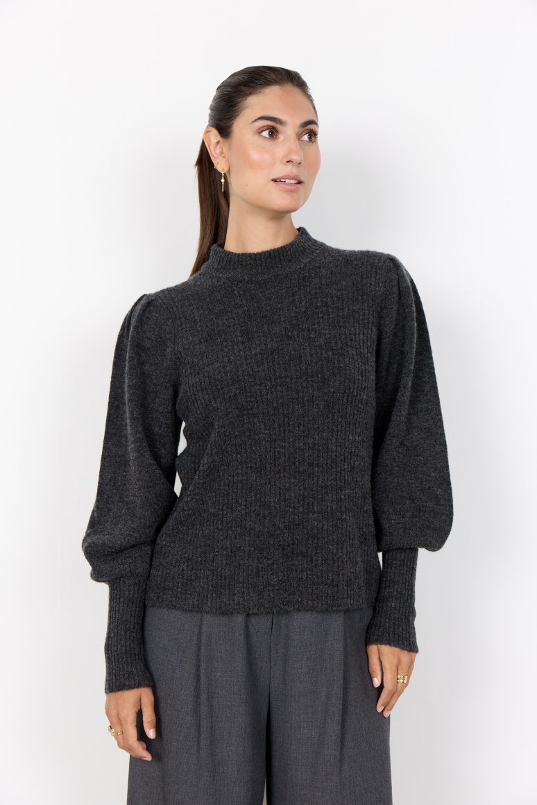 De Nessie 60 pullover van SoyaConcept is een klassieke trui gemaakt van een zachte mix van acryl, wol, polyester en elastaan. De trui heeft een hoge halslijn, lange ballonmouwen en een comfortabele pasvorm. Combineer hem met een lange rok en laarzen voor een mooie alledaagse look.